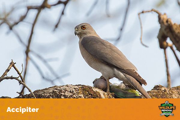 Another common avivore is the accipiter. Accipiters are a group of medium to large hawks. They have long tails and short, broad wings, and their diet consists primarily of birds, which they hunt by stealthily approaching their prey from behind before attacking.